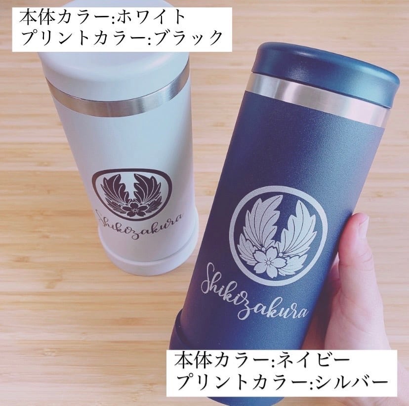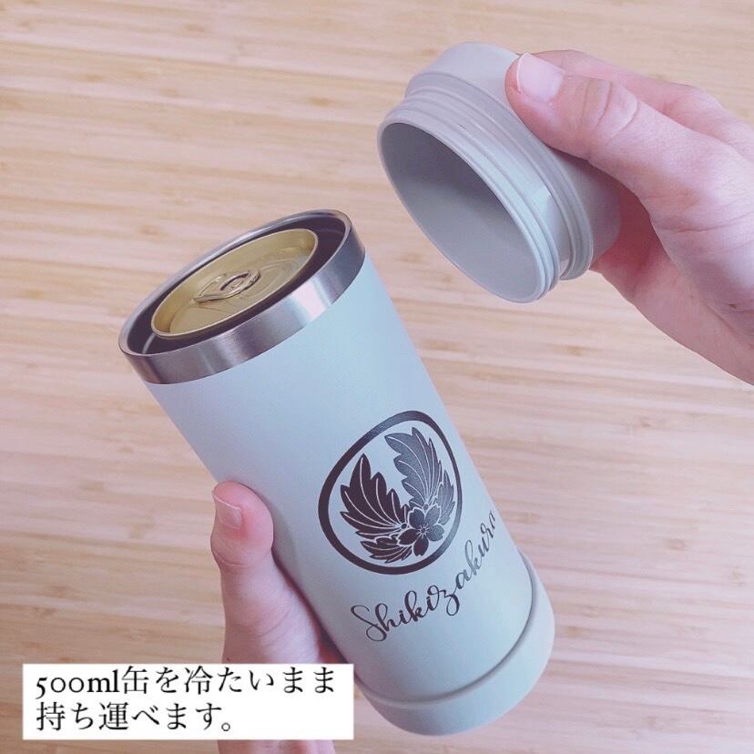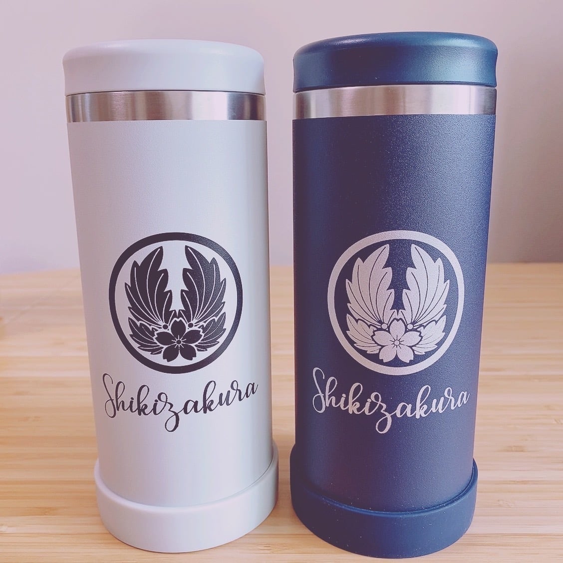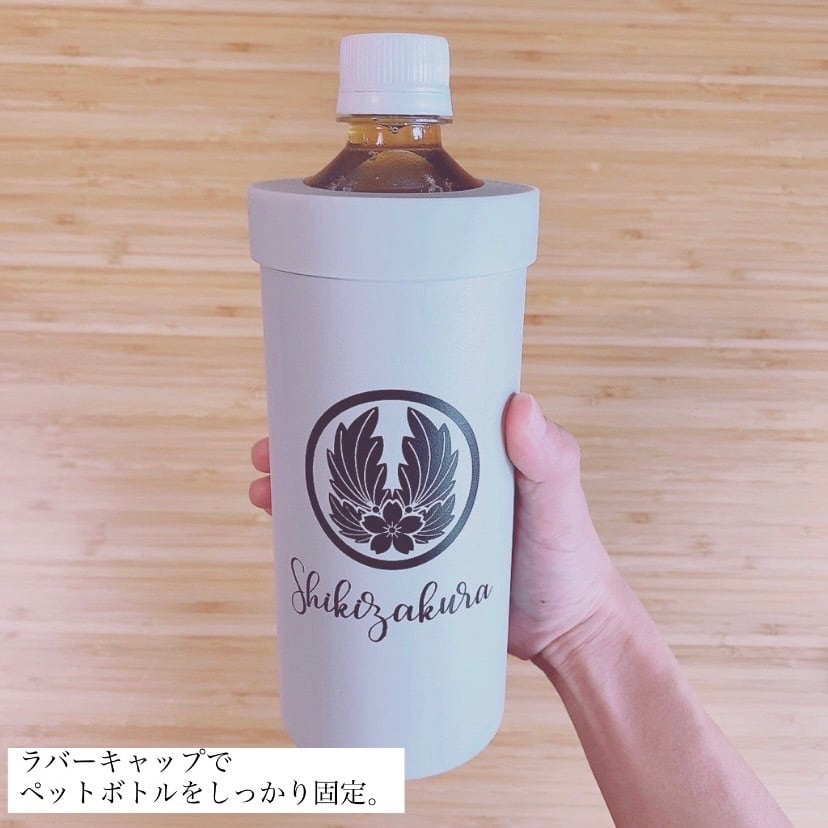 水筒、ペットボトルホルダー、缶クーラーにもなる真空2重構造の3way四季桜オリジナルステンレスボトル